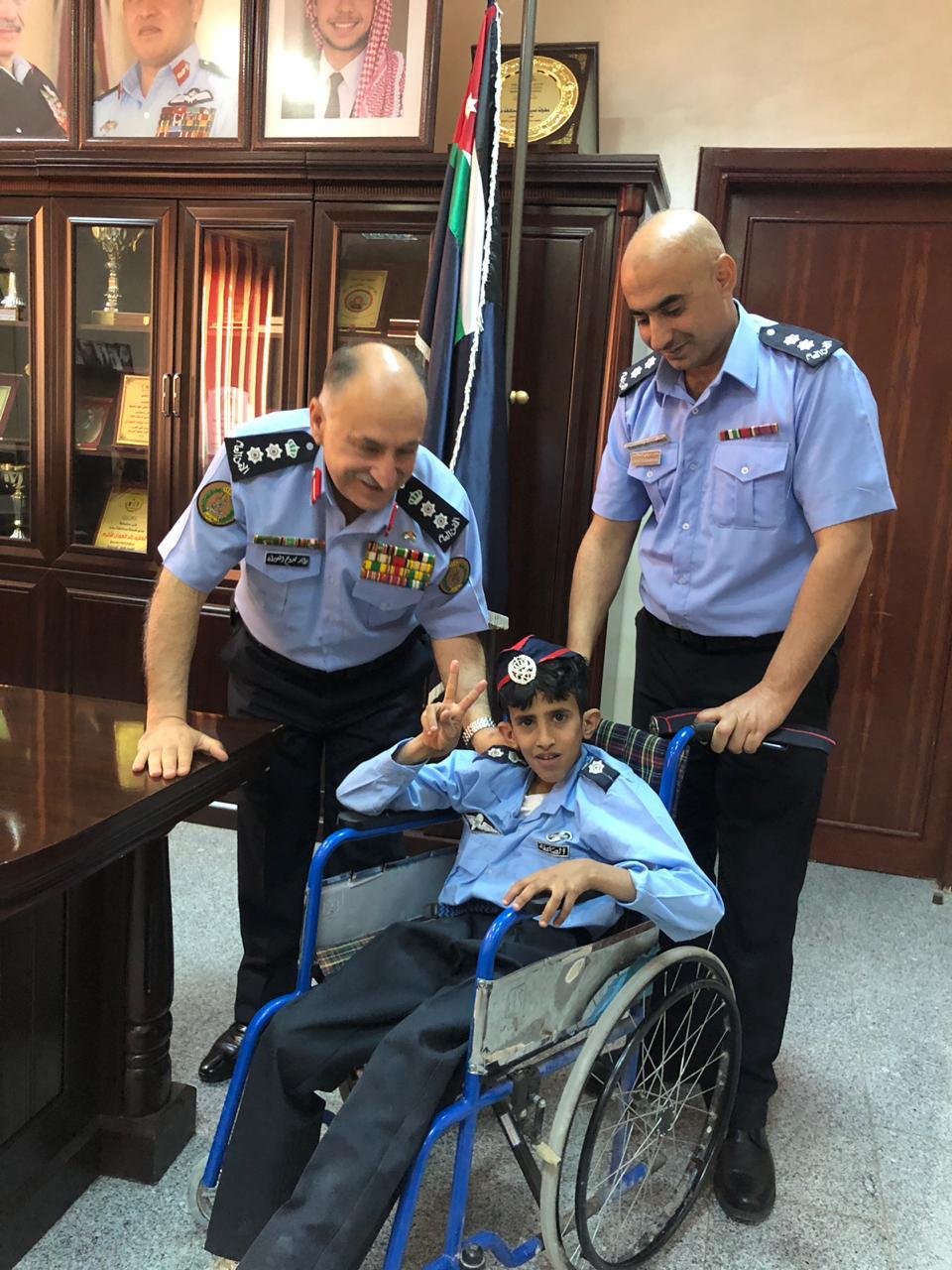 سرايا - مديرية الأمن العام تحقق أمنية الطفل ياسر الشباكي والذي يعاني من إعاقة حركية بقضاء يوم كرجل أمن عام ضمن مشروع الشرطي الصغير في محافظة مادبا.