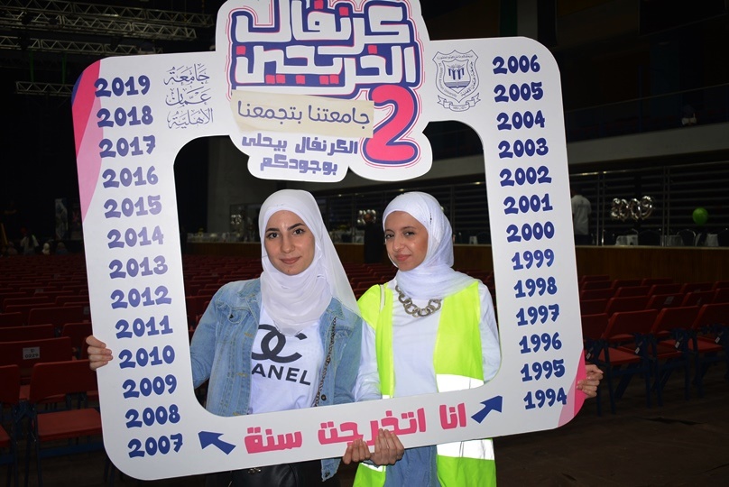 برعاية د. ماهر الحوراني رئيس هيئة المديرين في جامعة عمان الأهلية، أحتضنت جامعة عمان الأهلية يوم الجمعة الموافق ١٩/٧/٢٠١٩، اللقاء الثاني لخريجي الجامعة منذ تأسيسها عام ١٩٩٠ وحتى الان، في كرنفال أحتفالي بهيج تحت عنوان "جامعتنا تجمعنا" في جو عائلي سادته روح المودة والأخوة بين الخريجين.