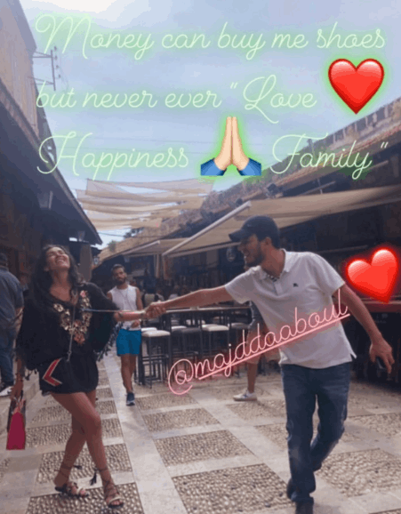 الا انها مؤخرا قرّرت أن تفاجئ الجميع وتعلن اسم حبيبها وهو الشاب مجد دعبول، ونشرت صورتهما معا عبر حساب "انستغرام" خلال تواجدها في مكان عام وعلّقت عليها بالقول: "المال يشتري لي الأحذية، لكن لا يستطيع شراء الحب، العائلة والسعادة"، ووضعت قلبين أحمرين على الصورة.