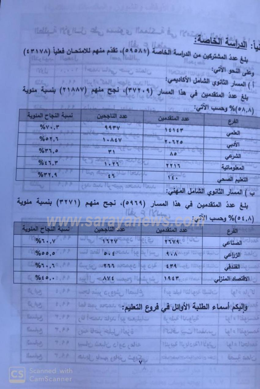 وجاءت نسبة النجاح بالدراسة الخاصة 58.8% وهي مطابقة لنسبة النجاح بشكل عام.