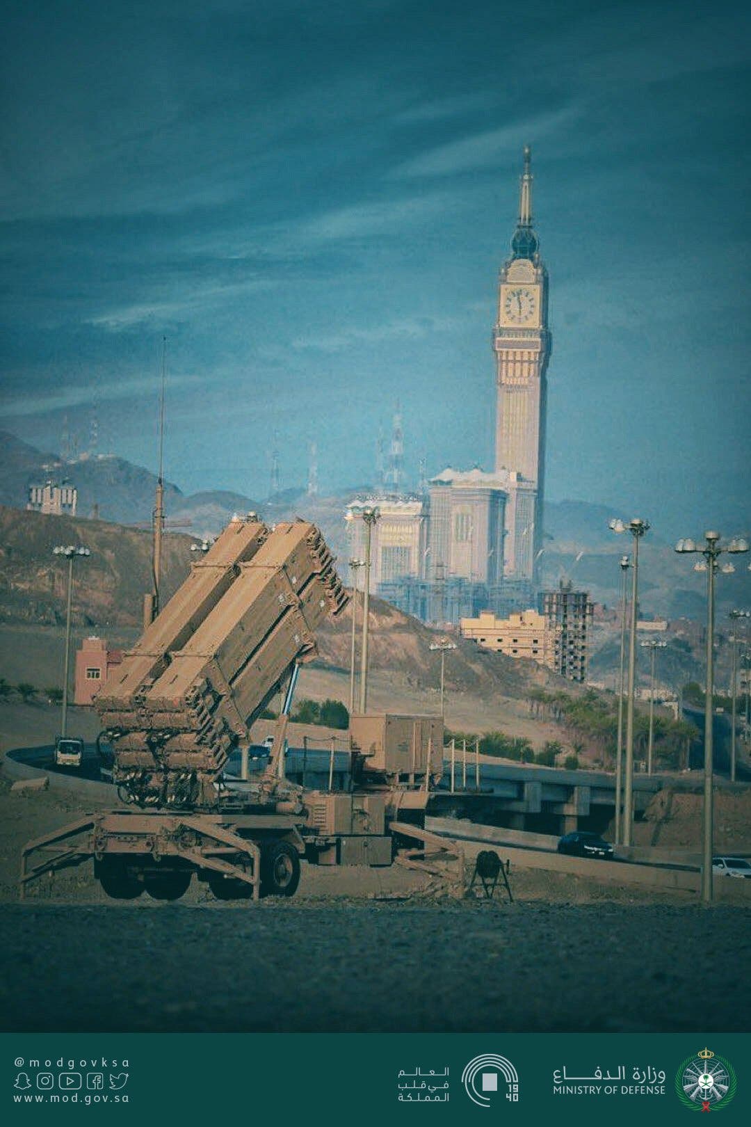 وفي هذا السياق، بث حساب وزارة الدفاع على "تويتر" صورتان لمضادات الصواريخ التي تنشرها قوات الدفاع الجوي في مكة المكرمة، أرفقتهما بتعليق: "قوات الدفاع الجوي كالشمس تنير الأمان.. وكالضياء نُهيب الظلام".