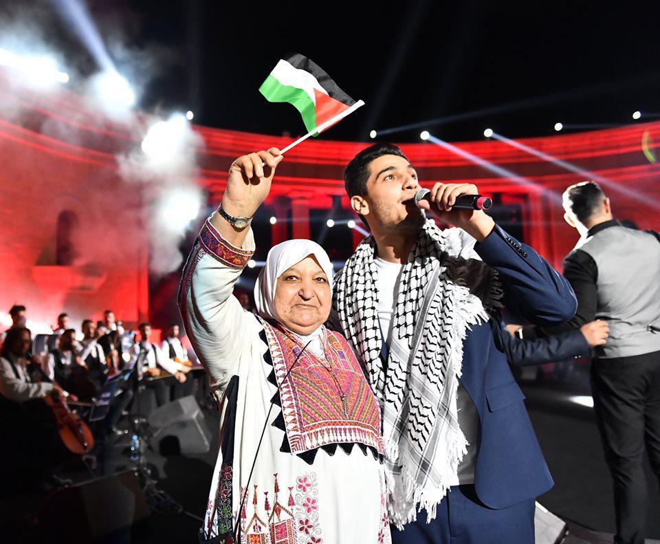 وخلال الحفل وجه الفنان محمد عساف التحية لاهل القدس ولغزة الحب والتحية والسلام كما شكر كل من حضر هذا الحفل رغم الظروف والصعوبات على الحواجز ، ليخص بالتحية لكافة الاسرى في سجون الاحتلال ، كما رحب بام الاسرى ام ناصر التي حرصت على حضور الحفل رغم ان ابنائها الثلاثة اسرى في سجون الاحتلال ، ليحمل الحفل رسالة الفرح للشعب الفلسطيني ورسائل الصمود وان القدس ستبقى عربية وعاصمة فلسطين الابدية .