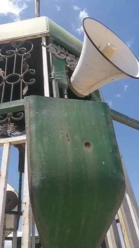 سرايا - تداول نشطاء مواقع التواصل الاجتماعي على نطاق واسع صوراً تُظهر سماعات أحد المساجد وقد اخترقها عشرات الأعيرة النارية بشكل عشوائي.