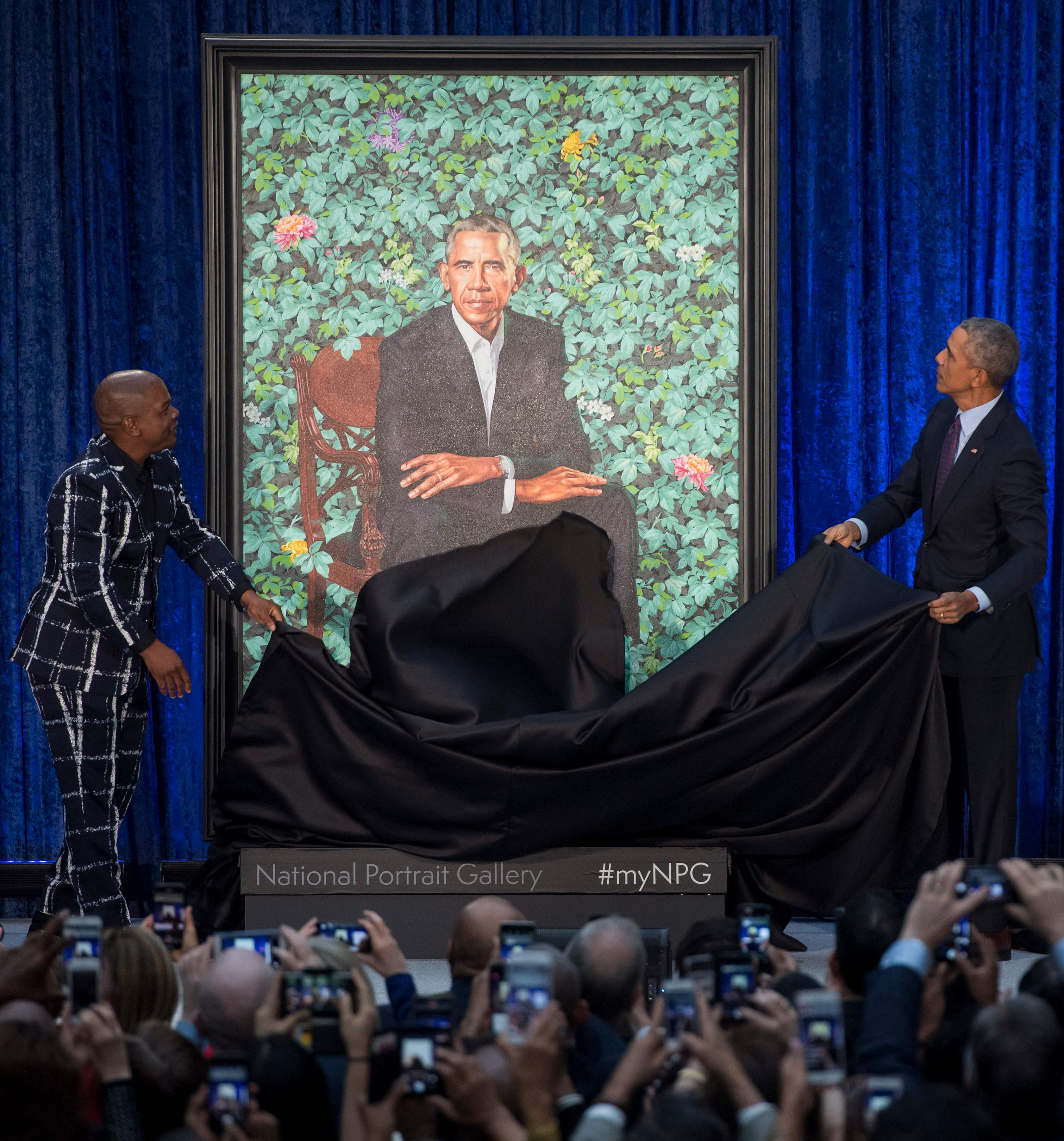 الرئيس السابق للولايات المتحدة الامريكية باراك اوباما يرفع الستار عن صورة كبيرة للشهيد البطل ( صدام حسين ) اعترافا ضمنيا بالخطأ الكارثي الذي ارتكبته في حق العراق والعراقيين في احتلالهم العراق ...؟؟؟
