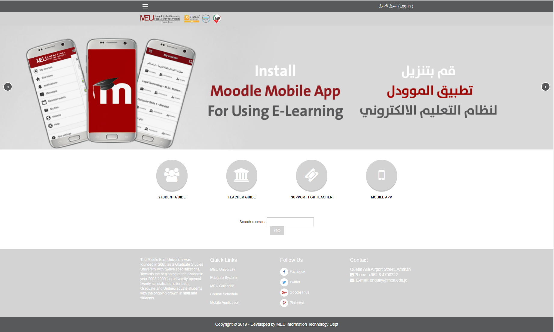 سرايا - أطلقت دائرة تكنولوجيا المعلومات قسم التعلم الالكتروني في جامعة الشرق الأوسط واجهة جديدة لنظام التعليم الالكترونيE-learning http://elearning.meu.edu.jo/