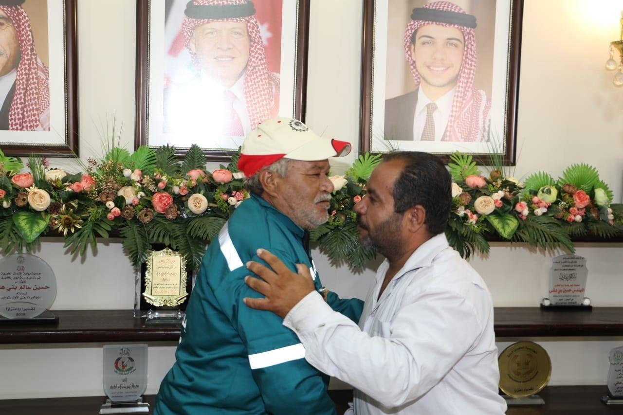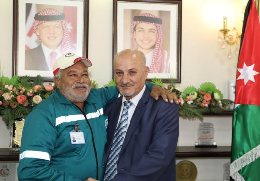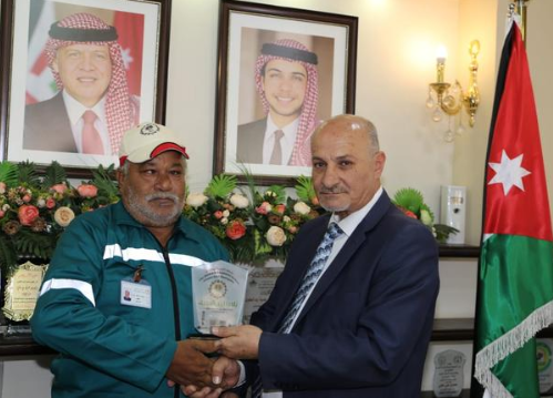 سرايا - كرم رئيس بلدية اربد الكبرى المهندس حسين بني هاني عامل الوطن رمضان عبدالعال عقب قيام " مراقب العمال " بإجباره على الدخول إلى الحاوية والضغط على النفايات من الداخل وسقوط العامل لدى خروجه من الحاوية حيث تم تسليمه درعا تقديريا اضافة لتكريمه ماديا ومنحه مبلغا ماليا .