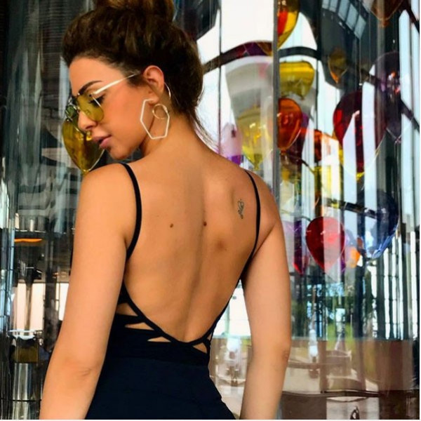 ملكة المسرح كشفت بالصورة عن وشم جديد رسمته على ظهرها، في الوقت الذي لفت أنظار الفانز كدمة زرقاء قوية أسفل الوشم، حيث تسائل فانز النجمة اللبنانية عن سبب هذه الكدمة، وفي الوقت الذي توقع البعض أن تكون آثار لإبرة طبية، ربط البعض بينها وبين تعرض الفنانة لاصطدام أو حادث بسيط، فترك آثاره على ظهرها.