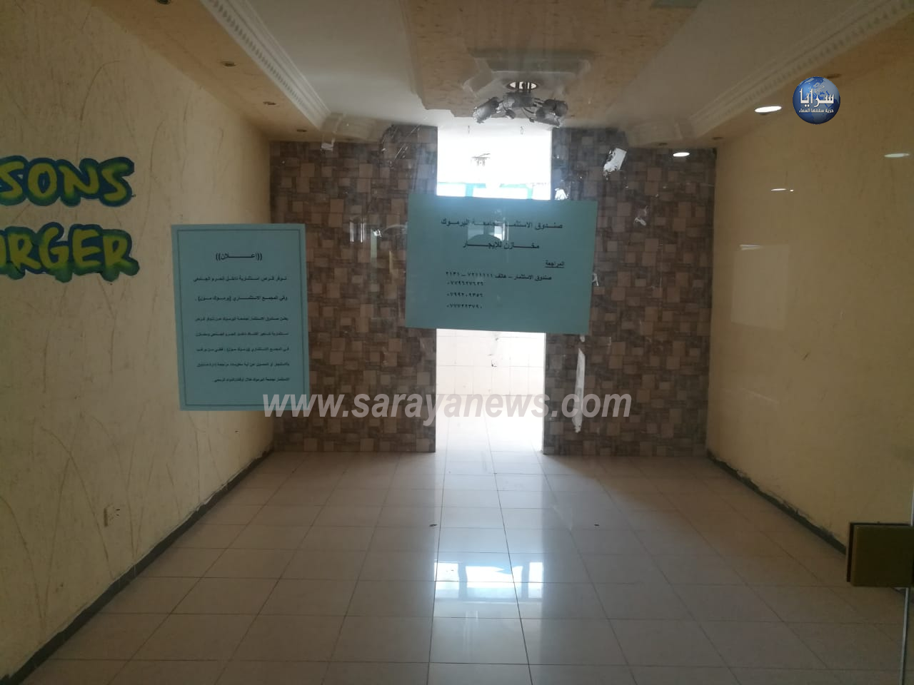 سرايا - اربد - يوسف قطيش - كشف عدد من المستثمرين في محافظة اربد لسرايا بأن فقدان أمن الإستثمار دفعهم لإخلاء محالهم وإغلاق استثمارتهم داخل مبنى اليرموك مول التابع لجامعة اليرموك وسط مدينة اربد.