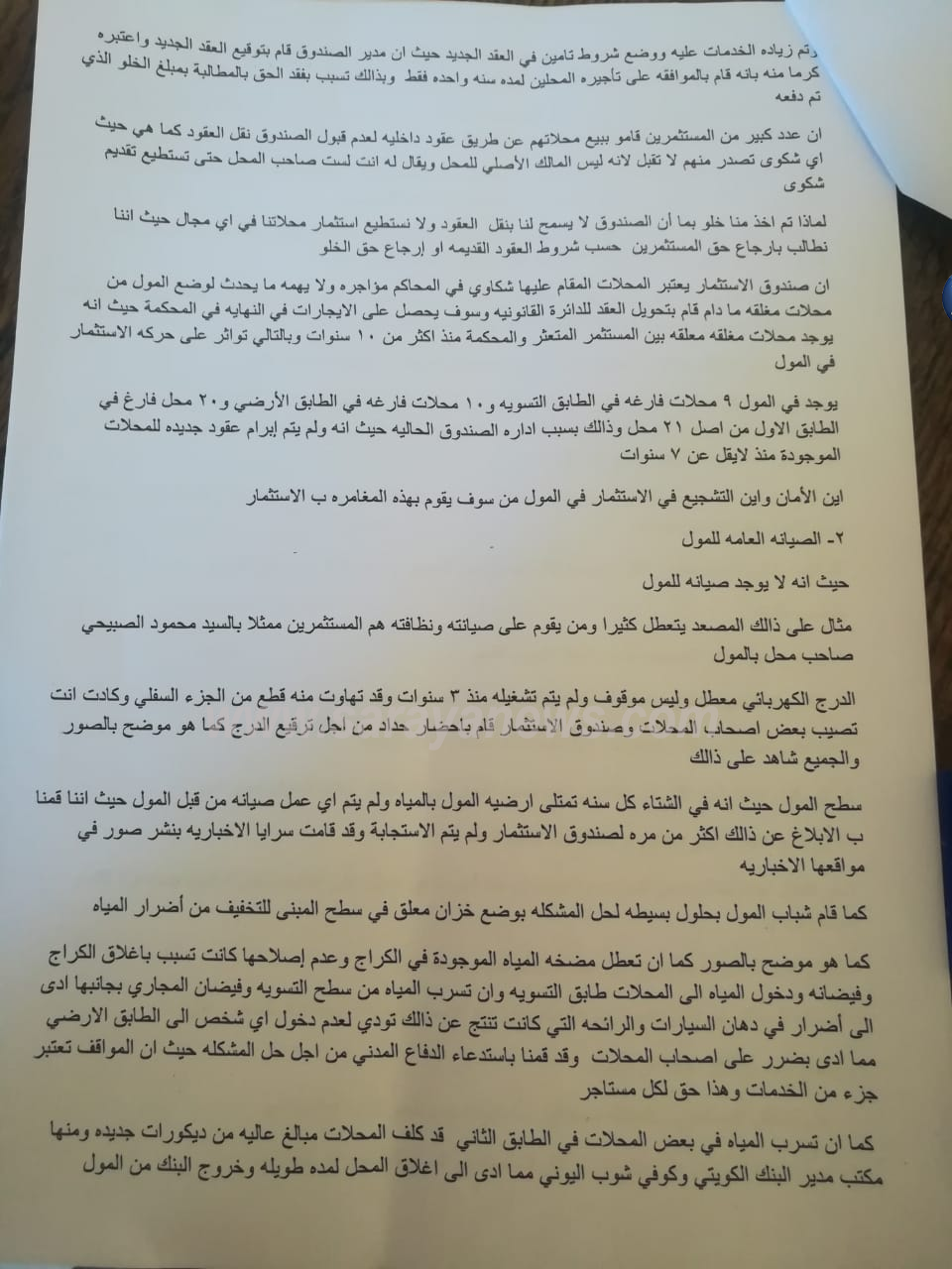 و يوجد بالعقد بند ان صندوق الاستثمار غير مسؤول عن تراخيص محلات المستثمرين وأن متطلبات ترخيص المحلات إذن اشغال والصندوق لم يوفر إذن اشغال المستأجرين.