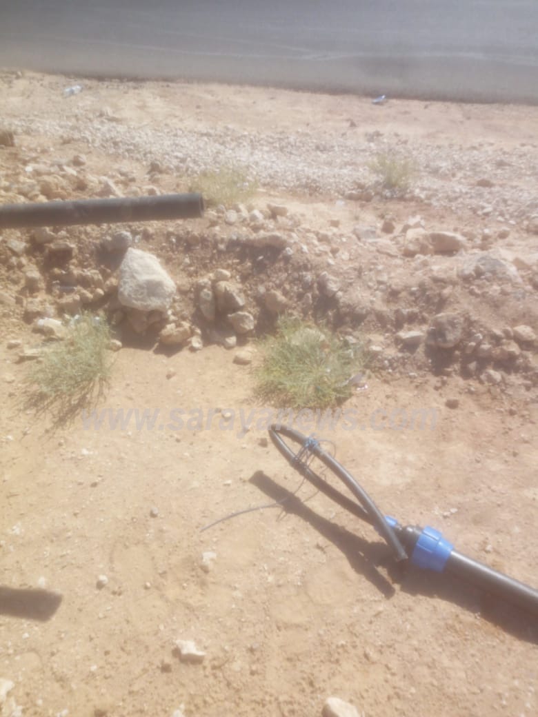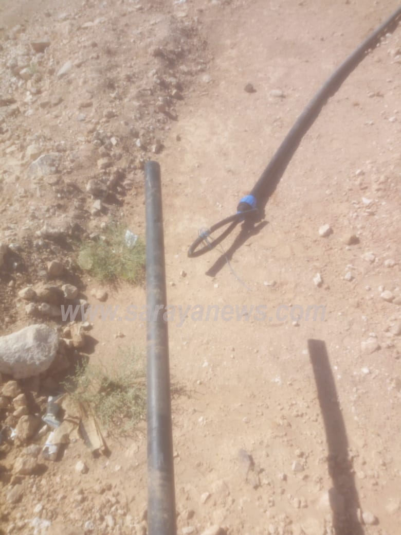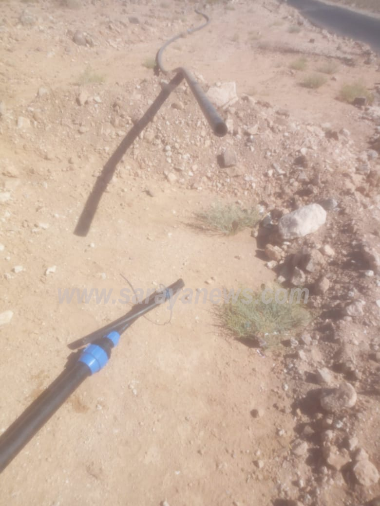 واوضح انه اكتشف أهالي المنطقة بقص خط المياه الواصل إلى منازلهم والبالغ عددها ١٥ منزل بحجة ان هنالك ثقب في خط المياه وتسرب المياه منه بغزارة ، مشيرا الى انه وعندما اتجه الاهالي الى الموقع تبين عدم وجود تسرب مياه وقص الخط قبل أكثر من ثلاثة أيام وعدم إصلاحه حتى هذه اللحظة.