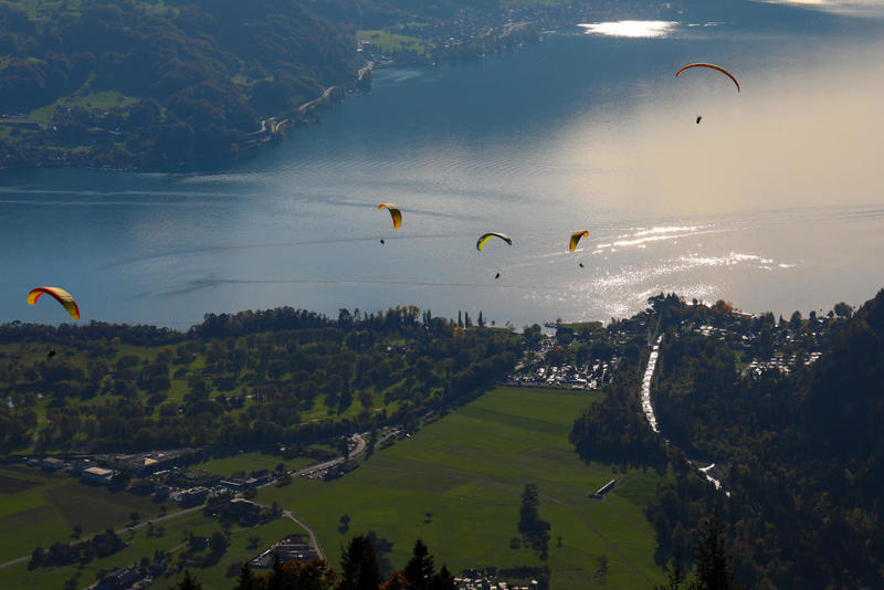 سرايا - تشتهر بلدة إنترلاكن السويسريَّة ببحيراتها، ومنازلها الخشب القديمة. وإلى التزلُّج على الماء، والتجذيف بزوارق الـ”كاياك”، يُقدِّم هذا العنوان السياحي تجارب القفز بالمظلَّات.