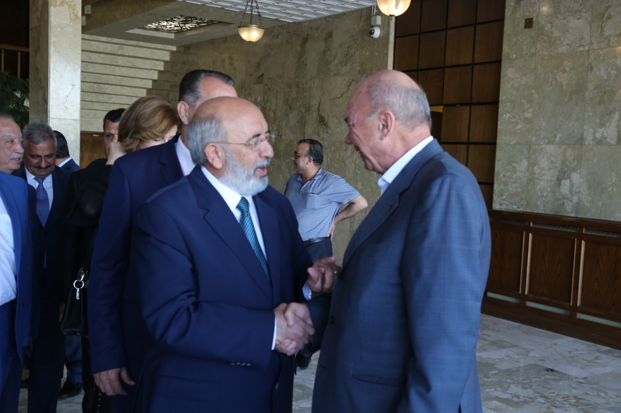 عمان - سيف عبيدات - التقى رئيس مجلس الاعيان رئيس الوزراء الاسبق فيصل الفايز ظهر امس الثلاثاء نخبة من المثقفين و الناشطين والوزراء السابقين و الكتاب الصحفيين والاعلاميين والنقابيين والفنانين من اعضاء قروب سرايا على واتس اب ، وذلك للتباحث حول جملة من القضايا التي تهم الوطن والتحديات التي تواجهه ، حيث كان اللقاء يحمل الكثير من المكاشفة والصراحة المطلقة بالحديث عن الهموم والازمات التي يمر بها الاردن.