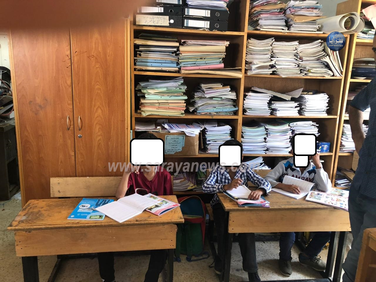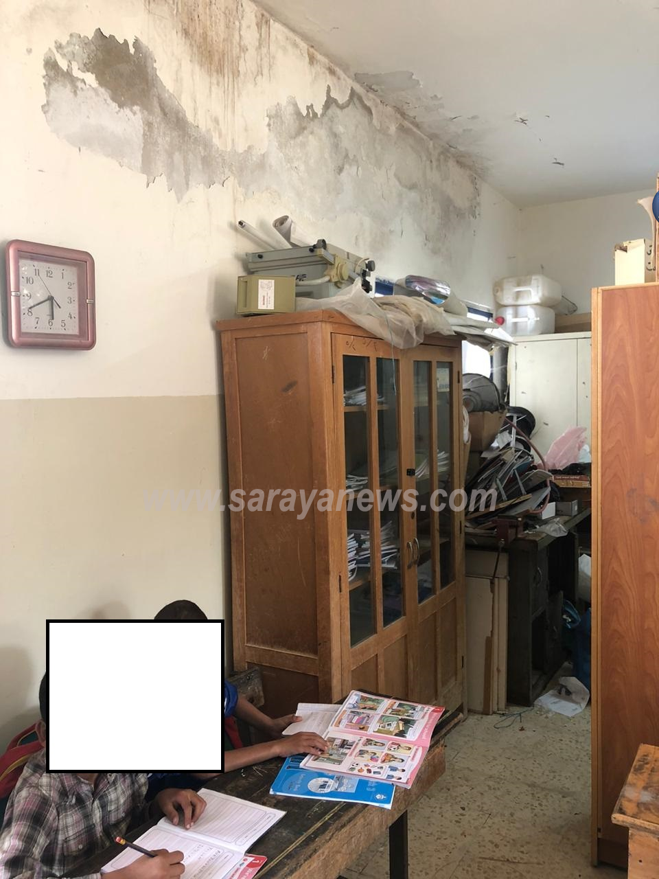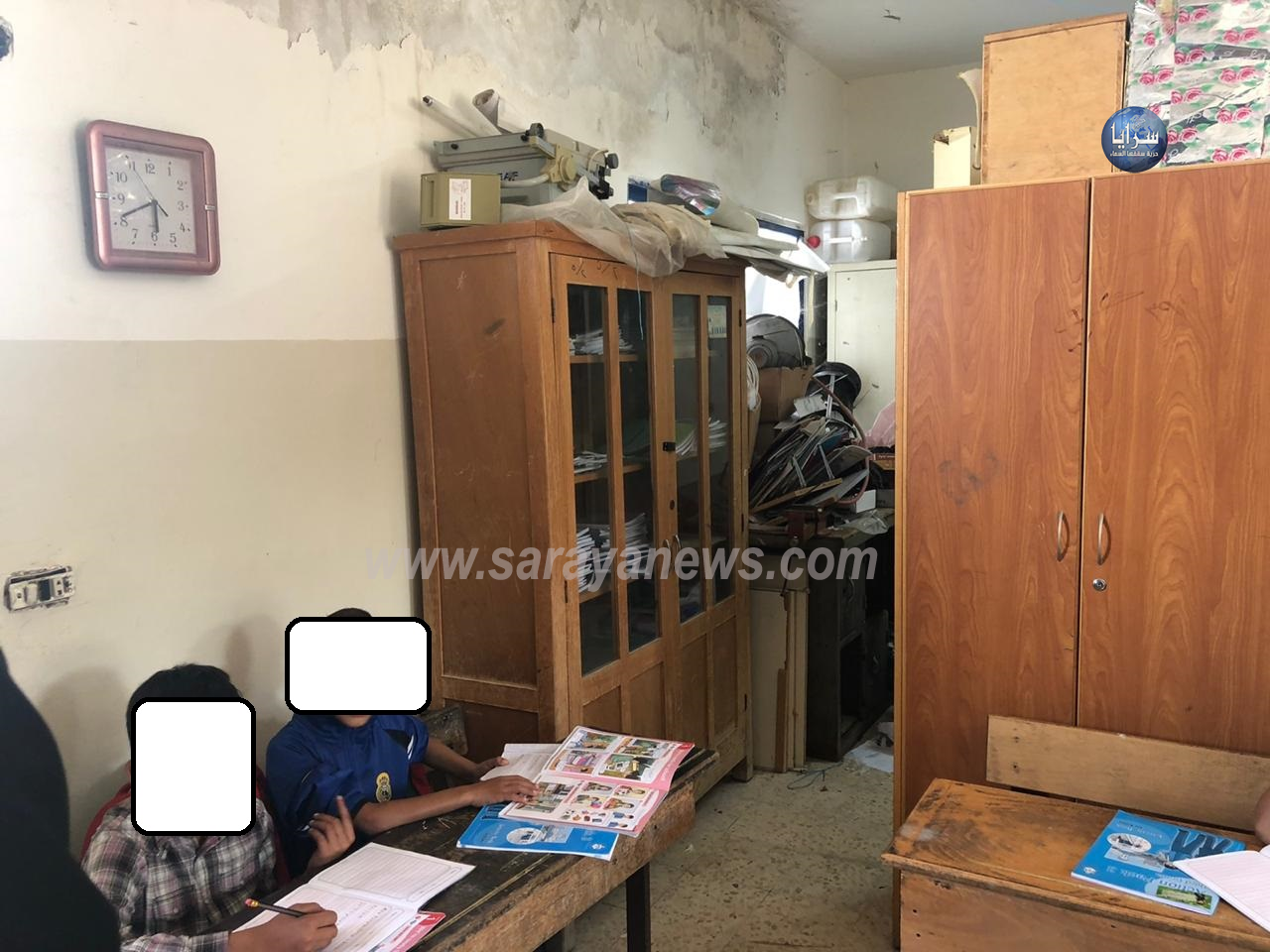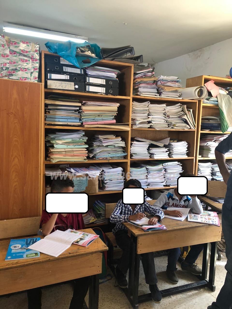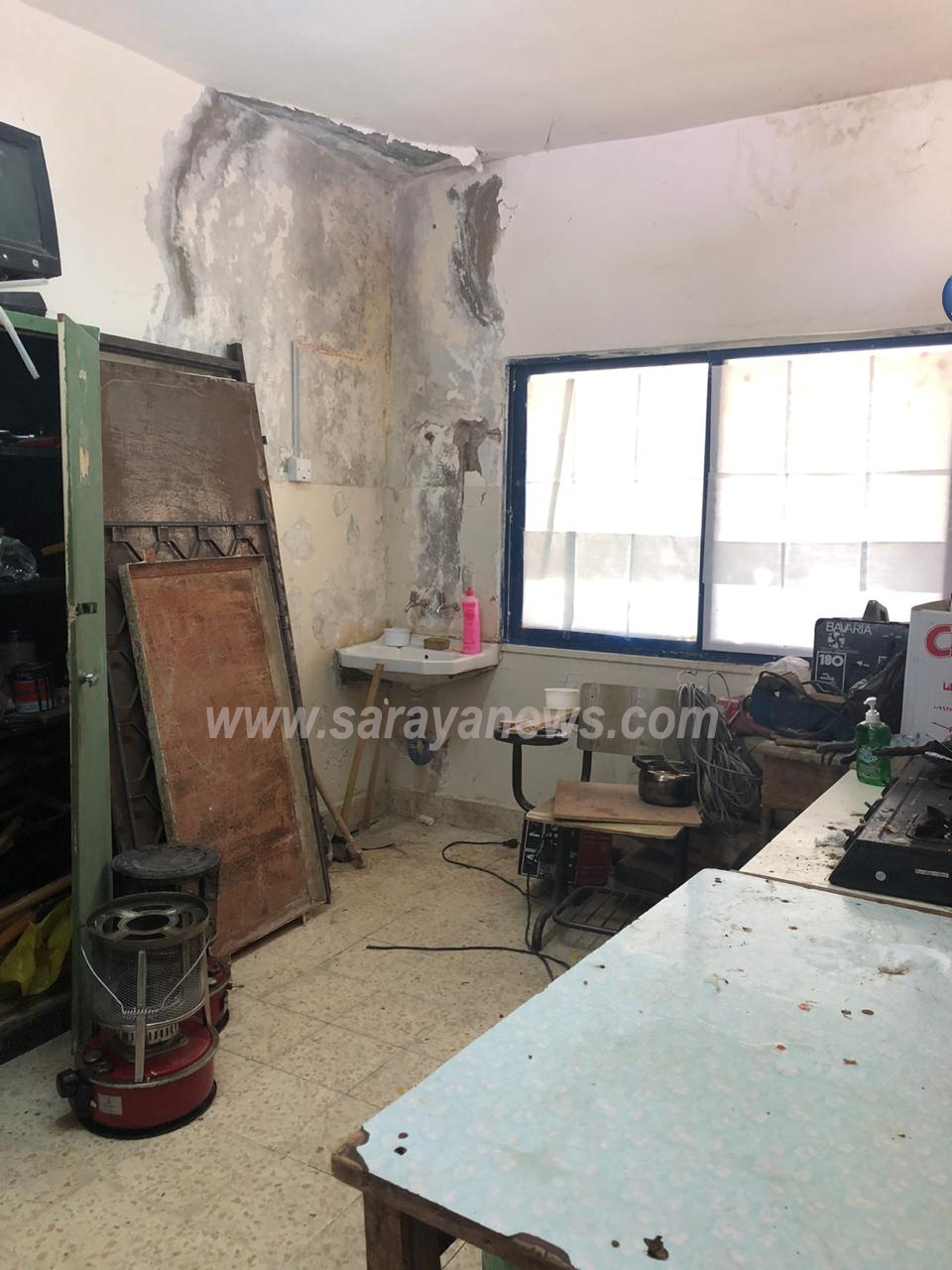 سرايا - خاص - حصلت سرايا على صور تظهر فيها احدى الغرف الصفية في مدرسة الاساسيه/السلط صفا جديدا للطلبة في مستودع للكاز والصوبات نظرا لنقص في اعداد الغرف الصفية .