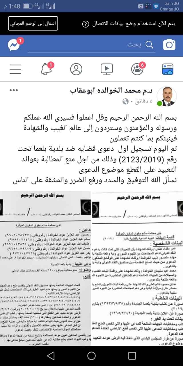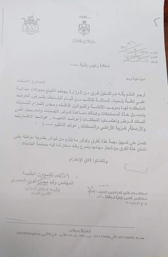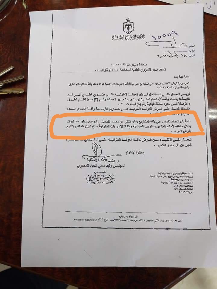 و قد تم اليوم تسجيل اول دعوى قضاية ضد قرار إحدى البلديات في محافظة المفرق  بفرض عوائد تعبيد على اراضي مواطنين تم تعبيد الطرق بها على حساب (المنح و ليس من ايرادات البلدية)