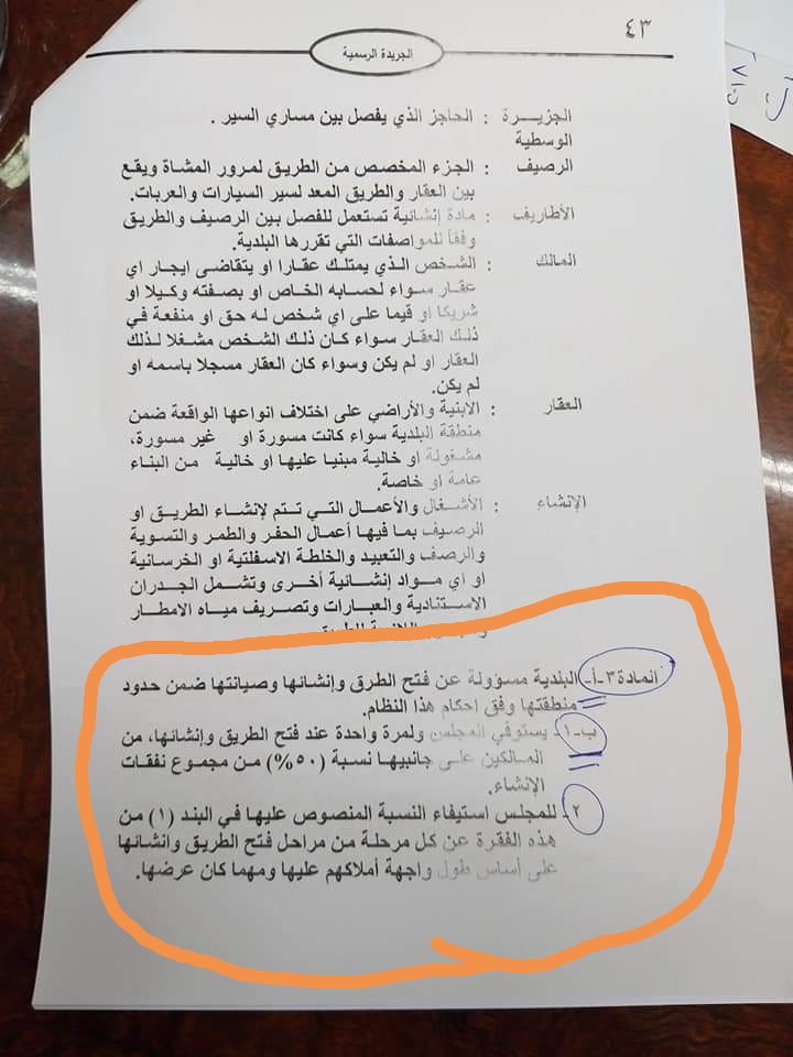 هل يعقل ان يدفع المواطن عوائد تعبيد لطرق تم تنفيذها بمنح خارجية و لم تتكلف البلديات فلسا واحدا بتعبيدها؟!!!