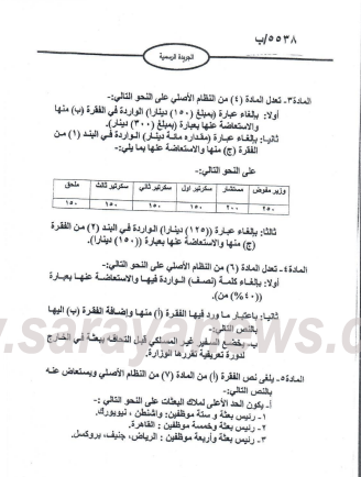 وتضمنت التعديلات تعديل المادة ٤ من النظام الأصلي ليتم تعديل المبلغ الممنوح من ١٥٠ ليصبح ٣٠٠ دينار.