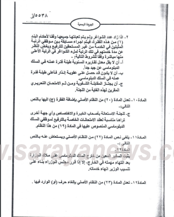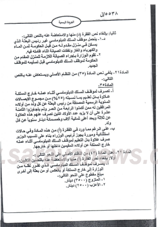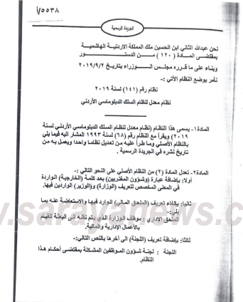 سرايا - رصد - صدرت التعديلات على نظام السلك الدبلوماسي لوزارة الخارجية الأردني في عدد الجريدة الرسمية والذي تضمن تعديل العلاوات وبعض المواد فيه.