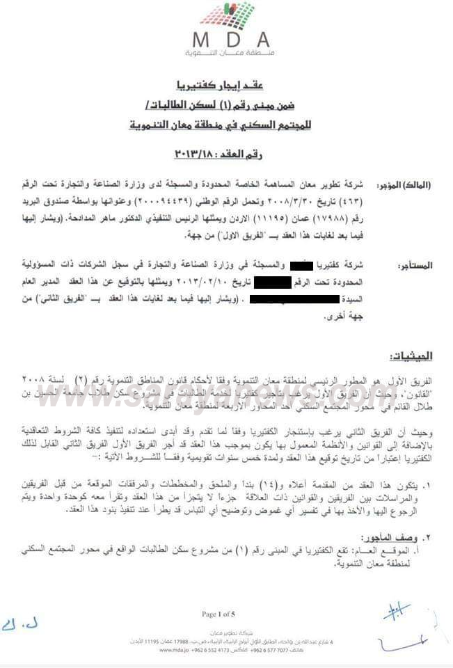وجاءت الدعوى القضائية بعد فشل كافة سبل الحوار بين شركة التطوير من جهة ، والشركة المشغلة للكافتيريا والتي من المفترض ان تقدم خدمات الطعام والشراب لقرابة 1400 طالبة جامعية ضمن المجمع السكني الطلابي الذي تملكه الأولى ، غير ان الأخيرة ترى ان تسرب المياه العادمة من سقف المبنى أرغمها مؤخراً التوقف عن العمل ، ضمن إجراءات وتدابير السلامة العامة المفترضة ، بحسب تقرير حصلت عليه من قبل لجنة في مديرية صحة محافظة معان.