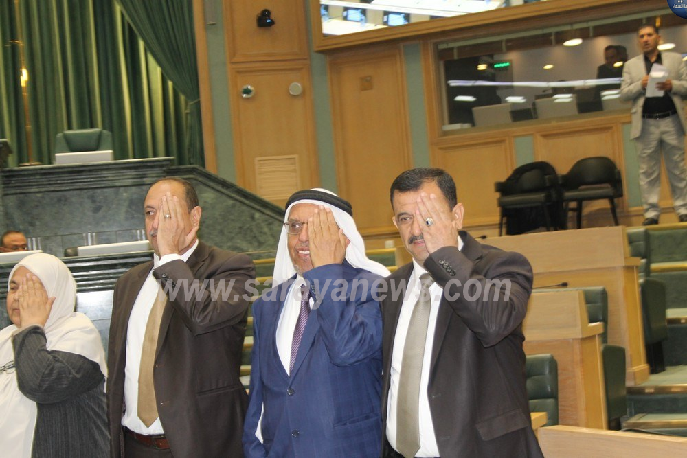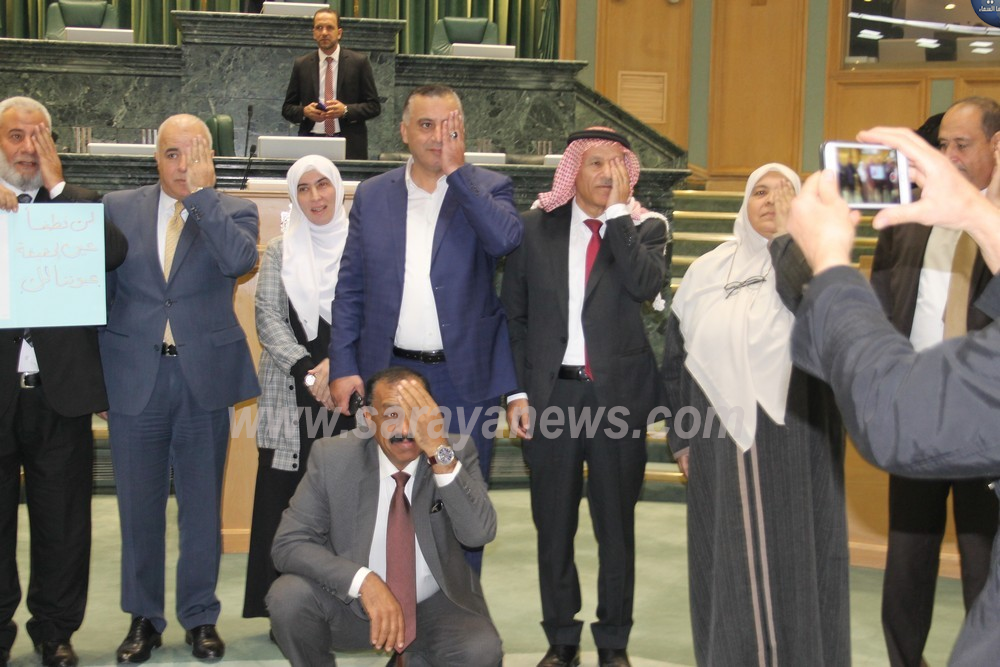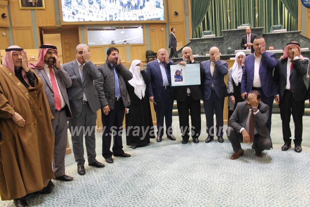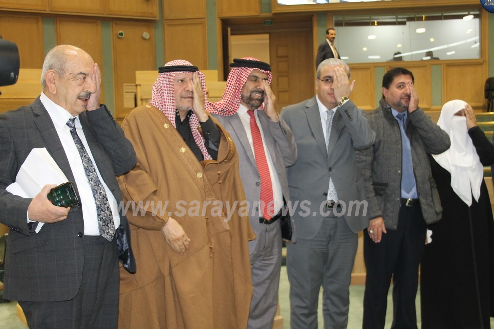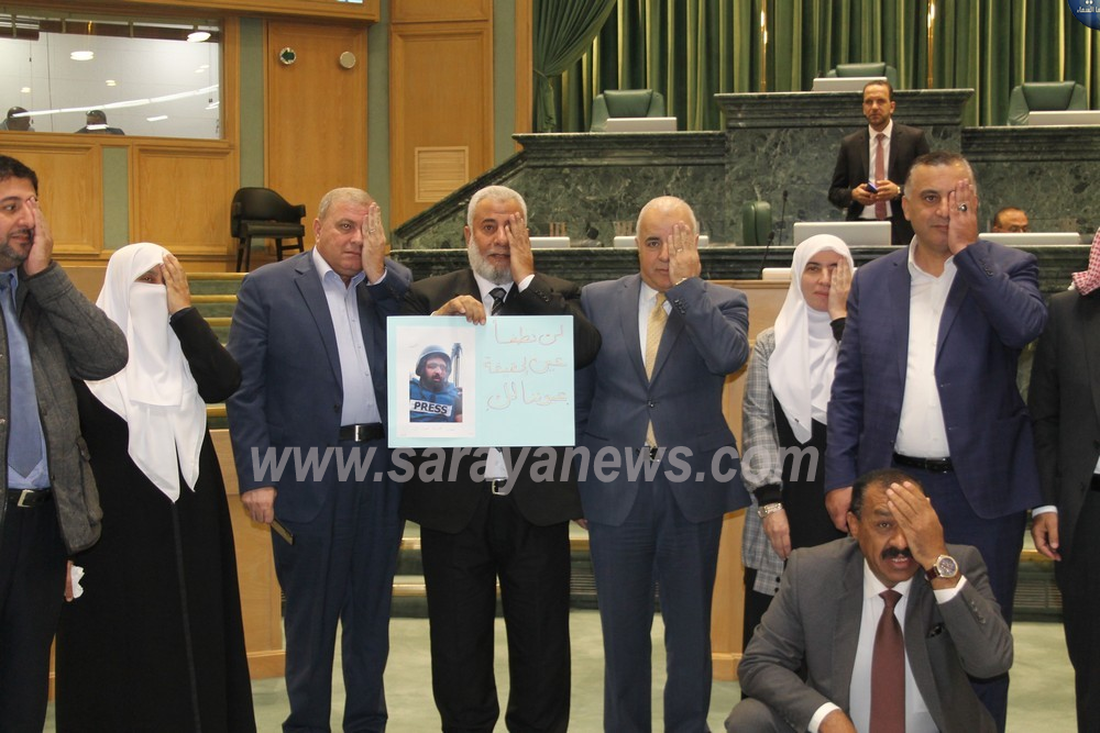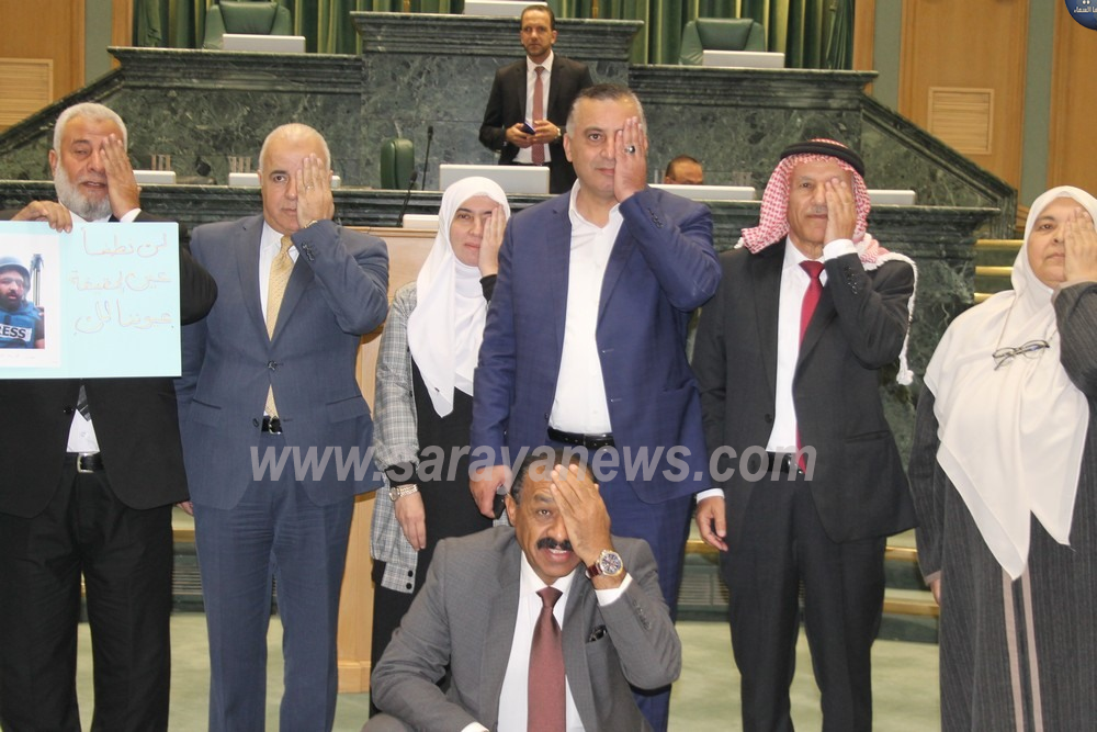 سرايا - قام أعضاء مجلس النواب خلال جلستهم صباح اليوم الثلاثاء بتغطية إحدى عينيهم تضامناً مع المصور الصحفي الفلسطيني معاذ عمارنةوكان النائب خليل عطية طالب مجلس النواب بافتتاح جلسته اليوم بالوقوف تضامناً ودعماً للمصور الفلسطيني