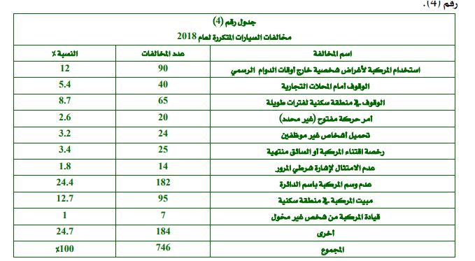 الجدول الذي يلي السطور يوضح أعداد مخالفات السيارات المتكررة :