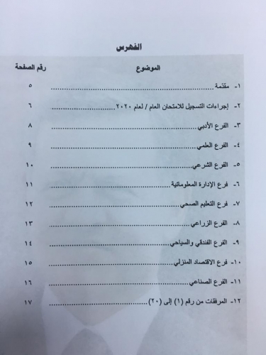 وتضمن الدليل الذي نشر على الموقع الإلكتروني للوزارة، المباحث المطلوبة من الطلبة في الامتحان لمختلف الفروع الأكاديمية والمهنية، والمحتوى الدراسي المقرر لهم في كل مبحث، وإجراءات التسجيل للامتحان في الموعد الذي ستحدده الوزارة في ما بعد.