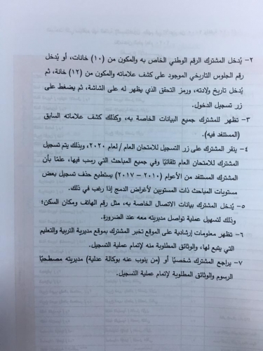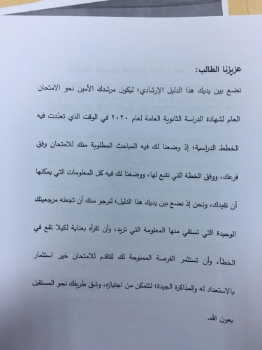 واوصت الوزارة الطلبة المعنيين باعتماد الدليل كمرجعية وحيدة للإجابة عن تساؤلاتهم، وبما يمكنهم من الاستعداد للامتحان في وقت مناسب.
