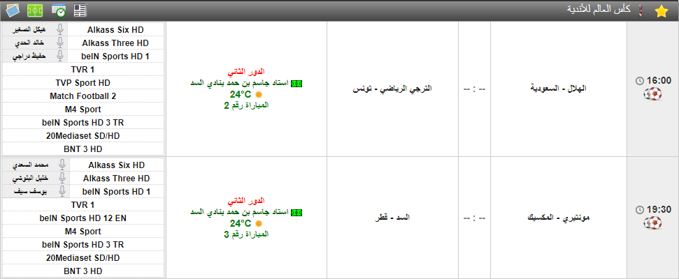 سرايا - رصدت "سرايا" ابرز المباريات ليوم السبت 14-12-2019 على الملاعب العربية و الاوروبية و العالمية