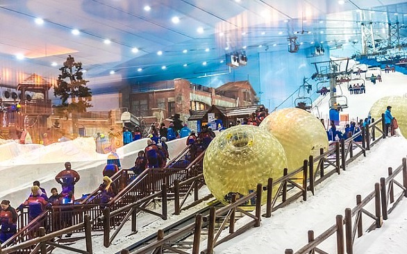 سكي دبي، الذي افتتح في 2005، يضم أكثر من 22000 متر من منطقة التزلج وجبل داخلي بطول 85 متراً، ويمكن للضيوف الاستمتاع بمسارات التزلج واستكشاف كهف الجليد، بل ويمكنهم التفاعل مع طيور البطريق.