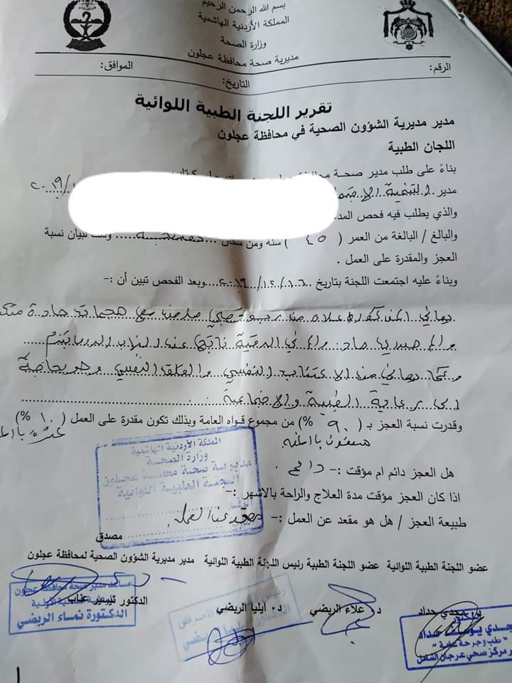 وبين ان زوجته أصبحت تعمل بالأجر مقابل ٥ - ٧ دنانير يوميا حتى تتمكن من توفير قوتهم اليومي، مشيرا الى انها تعمل بقطاف الزيتون حيث أن الموسم قارب على نهايته.