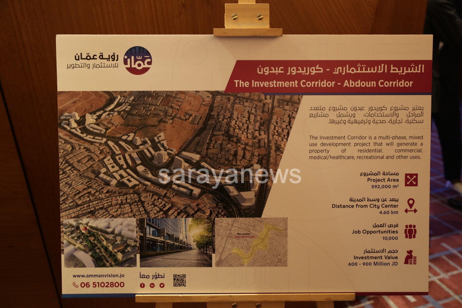 بدوره أشار الرئيس التنفيذي المهندس حمزة الحاج حسن بأن شركة رؤية عمّان للاستثمار والتطوير توفر مجموعة متنوعة من الفرص الاستثمارية التي تخدم المدينة وتلبي حاجات السوق والمستثمرين وتطلعات "أمانة عمّان الكبرى" والمجتمع الأردني، وذلك من خلال عدة خيارات استثمارية تعبر عن الشراكة الحقيقية ما بين القطاعين العام والخاص مثل الإيجار المباشر، المشاركة بالإيرادات أو الأرباح، المساهمة العينية في رأس المال ومشاريع البناء والتشغيل ونقل الملكية وذلك في سبيل تحقيق عوائد استثمارية عبر مشاريع مستدامة تواكب مشهد الأردن الحضاري الحديث .