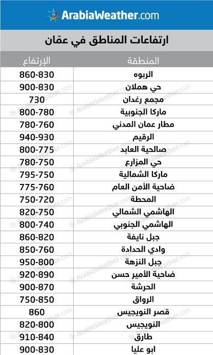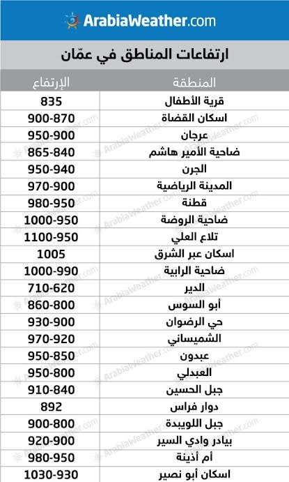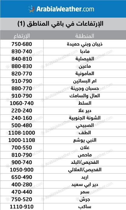 المرتفعات المتوقع تساقط الثلوج عليها: