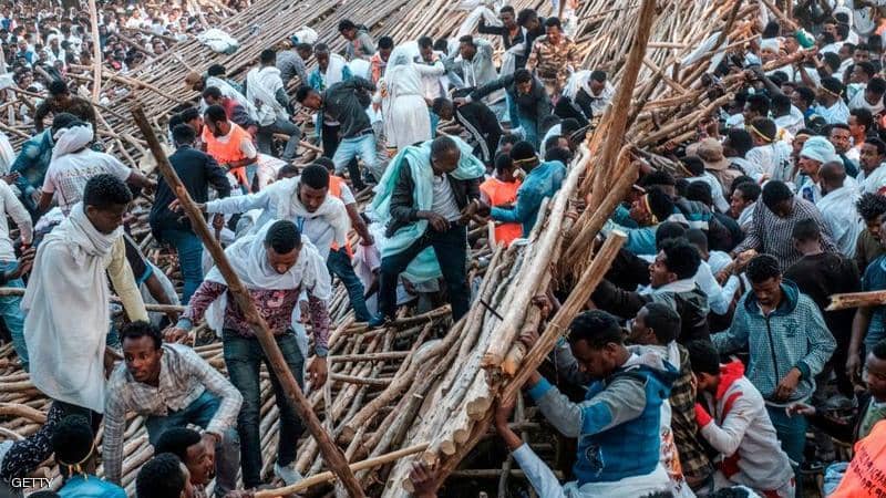 سرايا - قتل 10 أشخاص على الأقل، الاثنين، وأصيب العشرات، عندما انهارت منطقة لجلوس المشاهدين خلال احتفال كبير في إثيوبيا، وسط مخاوف من ارتفاع عدد القتلى.