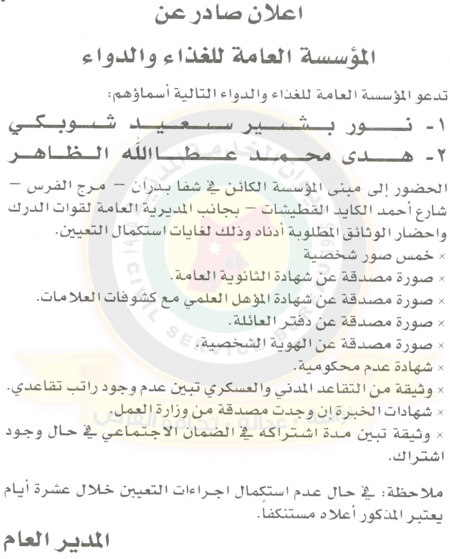 مدعوون للتعيين في مختلف الوزارات و المؤسسات الحكومية - أسماء