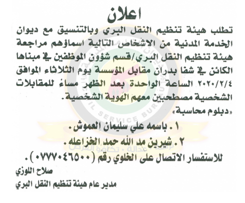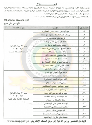 سرايا - يدعو ديوان الخدمة المدنية وبالتنسيق مع عدد من الدوائر والبلديات التالية أسماؤهم حضور الامتحان التنافسي الالكتروني حسب الأيام والاوقات المحددة في الاعلان