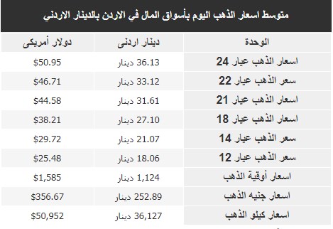 سرايا - رصدت سرايا التقرير الدوري والمتجدد لأسعار الذهب الاحد 16-02-2020 بالدينار الأردني وأيضا الدولار الأمريكي.يشمل التقرير أسعار المعدن بجميع عياراته (عيار 24, 22, 18, 14, 12) في الاردن.