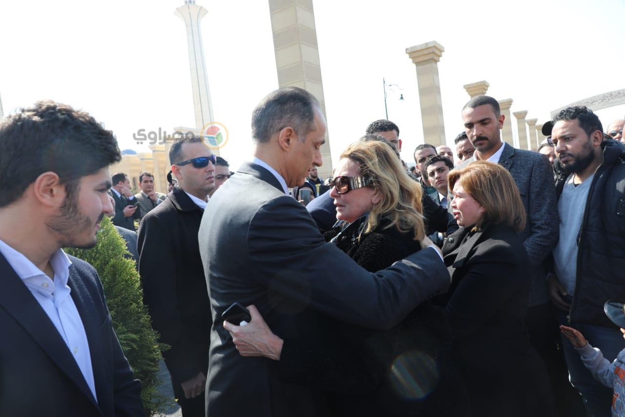 وشارك في الجنازة عدد من الفنانات والشخصيات العامة، وسيطر الحزن والبكاء على الفنانة إلهام شاهين والفنانة يسرا خلال تقديم واجب العزاء لكل من علاء وجمال مبارك نجلي الرئيس الأسبق مبارك.