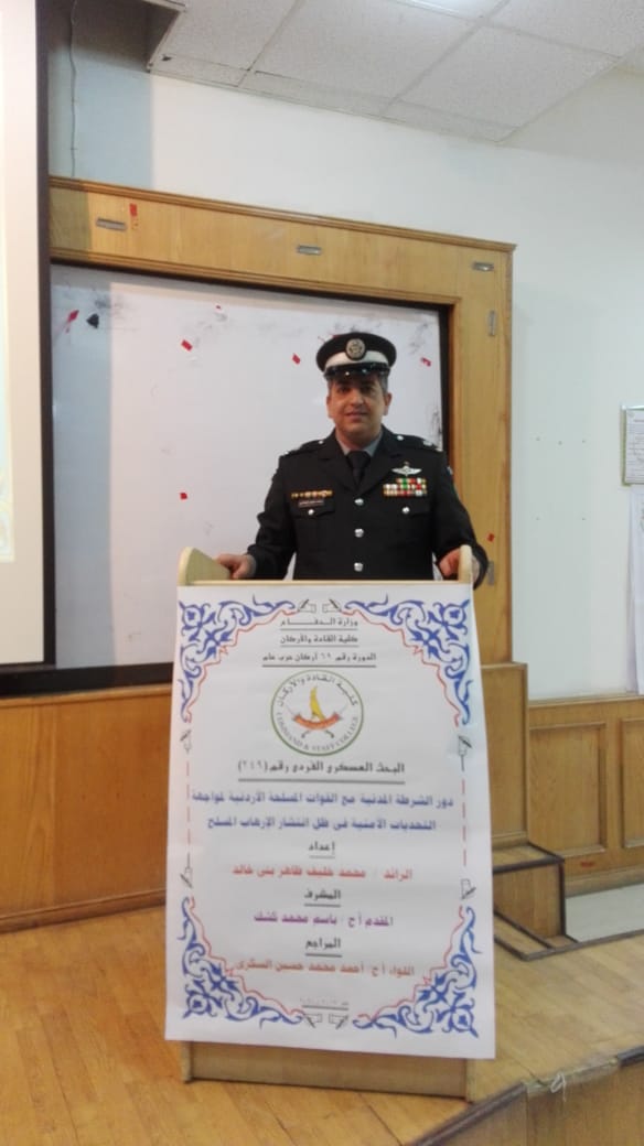 سرايا - عطوفة اللواء المتقاعد أحمد الخالدي والعائلة، ومن الزوجه والأبناء يامن وغزل وميس وام يأمن، يتقدمون باجمل ايات التهنئة والتبريك لنسيبهم الغالي الرائد محمد خليف الخالدي بمناسبة حصوله على درجة الماجستير من جمهورية مصر العربية.