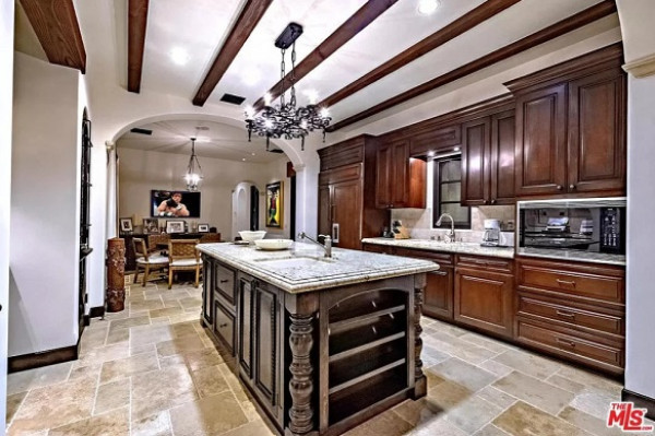 وتحتوي مساحة الطهي أيضاً على جزيرة كبيرة، مع سطح من الغرانيت يطل على منطقة تناول طعام على الطراز العائلي. ويقع الفناء الخلفي الضخم الذي يحتوي على مطبخ خارجي خاص به ومحطة شواء خارج غرفة الطعام مباشرة.
