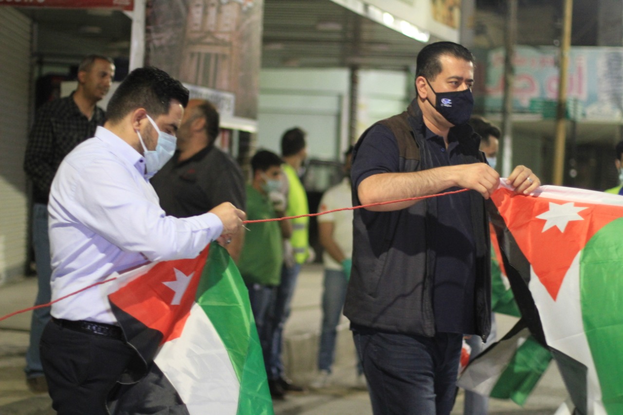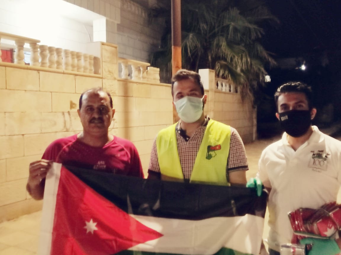سرايا - ضمن احتفالات المملكة الأردنية الهاشمية بمناسبة عيد الإستقلال 74 قامت هيئة شباب كلنا الاردن /المفرق و بلدية المفرق الكبرى ومديرية الثقافة بتوزيع العلم الأردني على المواطنين وتزين الشوارع في محافظة المفرق، ويأتي هذا النشاط دعماً للحملة الوطنیة لتعزیز قیم العلم الأردني #علمنا_عالٍ ، على موعدنا یوم الأثنين 25 أیار 2020 لنرى العلم فوق كل البيوت.