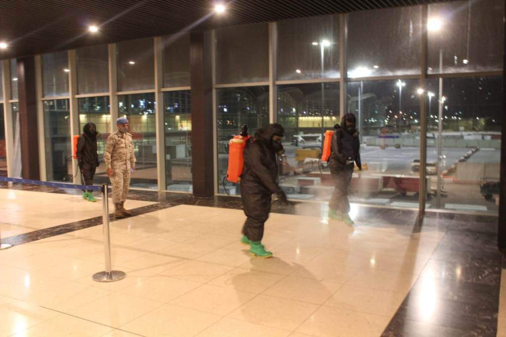 وقامت فرق من الإسناد الكيماوي التابعة لسلاح الهندسة الملكي بتطهير وتعقيم المطار بعد انتهاء الرحلة وصولاً بالمطار لبيئة آمنة وجاهزة لاستقبال المسافرين ضمن الخطط المتبعة.