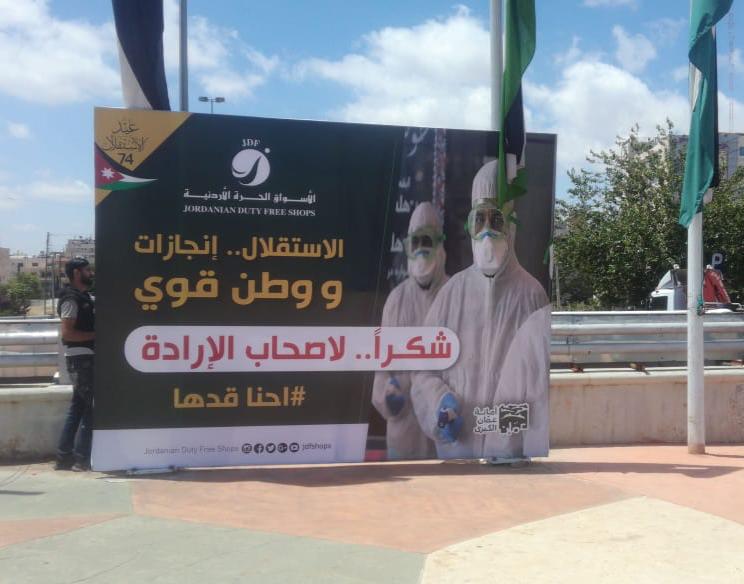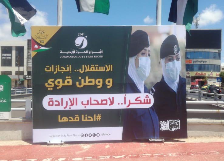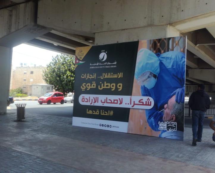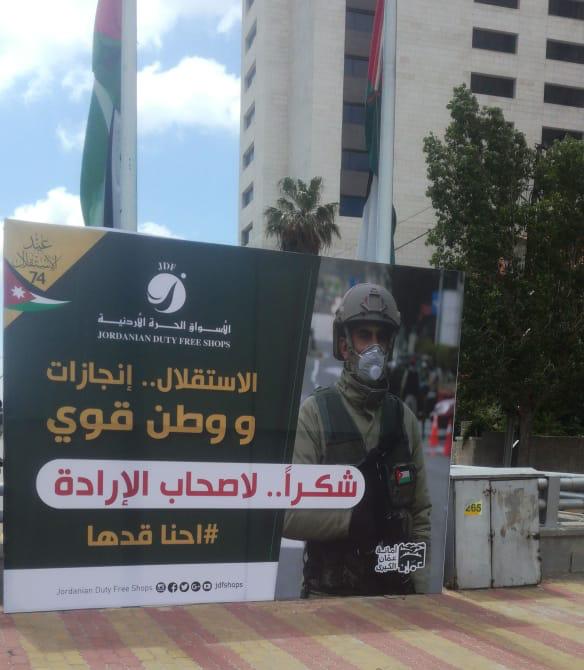 وبهذه المناسبة اطلقت الاسواق الحرة الاردنية اليوم في شوارع العاصمة حملة ( شكراً سيدنا) ( شكرا اصحاب الارادة) حملت خلالها عناوين تعكس الارادة الصلبة لجلالة الملك عبد الله الثاني بن الحسين حفظه الله والى جانبه سمو ولي العهد الامير الحسين بن عبد الله في ادارة الازمة بافضل صورها ، ولاصحاب الارادة من ابناء جيشنا العربي الباسل واجهزتنا الامنية والكوادر الصحية والطبية في مواقع عملها وميادين التقصي الوبائي والعلاجي.