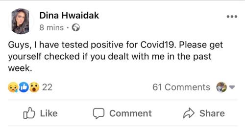 سرايا - أعلنت الإعلامية دينا حويدق، خلال الساعات القليلة الماضية، عن إصابتها بفيروس كورونا، وطلبت ممن خالطوها الأسبوع الماضي، التأكد من حالتهم الصحية.
