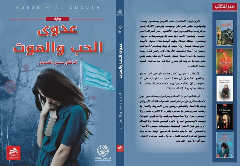 سرايا - (عدوى الحب والموت) الرواية الخامسة للدكتور حسين العموش والتي صدرت عن دار فضاءات للنشر والتوزيع وتتحدث عن قصة حب غريبه لطالبة طب في الجامعة الاردنية كتبها في فترة الحظر في زمن كورونا .