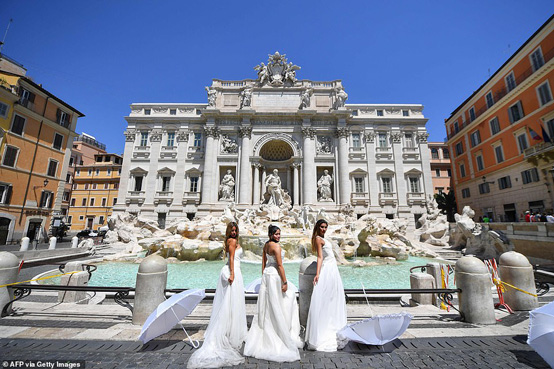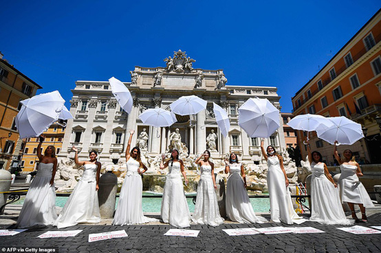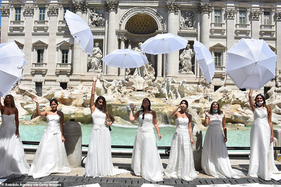 سرايا - خرجت عرائس في إيطاليا بمظاهرة رافضة لتشديد القيود على الحفلات، وتأجيل مراسم زواجهن.