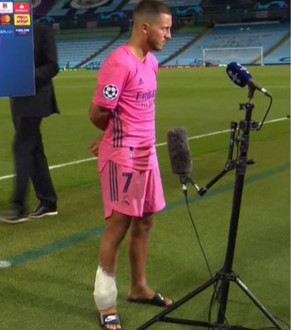 وظهر هازارد أثناء إدلائه بتصريحات عقب المباراة، بكيس من الثلج مربوط على كاحله، ليُثير القلق حول تجدد إصابته، التي عانى منها لشهور وخضع على إثرها لعملية جراحية.