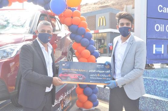 سرايا - في اجواء احتفالية بحضور الفنان الكبير عمر العبدالات ومدير عام الشركة المهندس ياسر المناصير وعدد من الحضور وممثلي عن شركة المناصير للزيوت والمحروقات ، تم تسليم أول سيارة نوعNissan Kicks موديل 2020 مجمركة ومرخصة للرابح الأول السيد محمد وائل جرادات ، ضمن حملة 6 سيارات لـ 6 رابحين مع أبشر أول برنامج مكافآت للمحروقات بالاردن من شركة المناصير للزيوت والمحروقات.