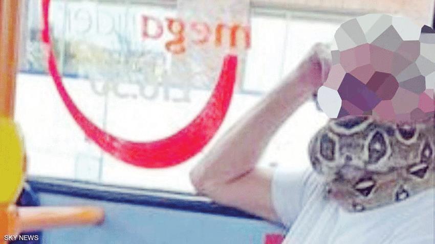 وانتشرت صورة الراكب على وسائل التواصل الاجتماعي، وهو يجلس على مقعد في الحافلة، بينما تلتف الأفعى الضخمة على رقبته ووجهه.