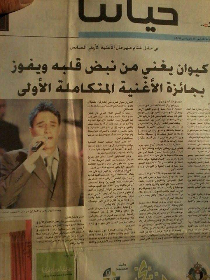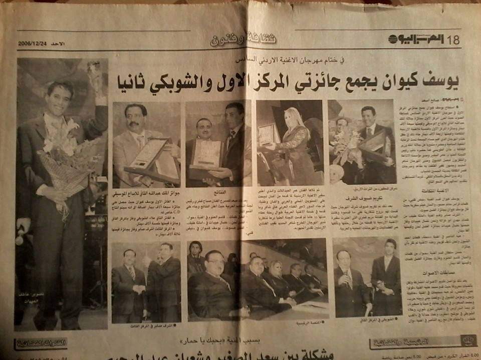 أما الفنان يوسف كيوان، الذي فاز بمهرجان الأغنية الأردنية العام 2006، بينما كان يبلغ من العمر 22 عاما، فهو حاصل على لقب “العندليب الأردني” بعد أن حصل على المركز الثاني في برنامج “العندليب من يكون؟” الذي عرض على شاشة mbc1 لمدة ثلاثة أشهر، وكان كيوان من بين 17 ألف متقدم للبرنامج من جميع أنحاء الوطن العربي.