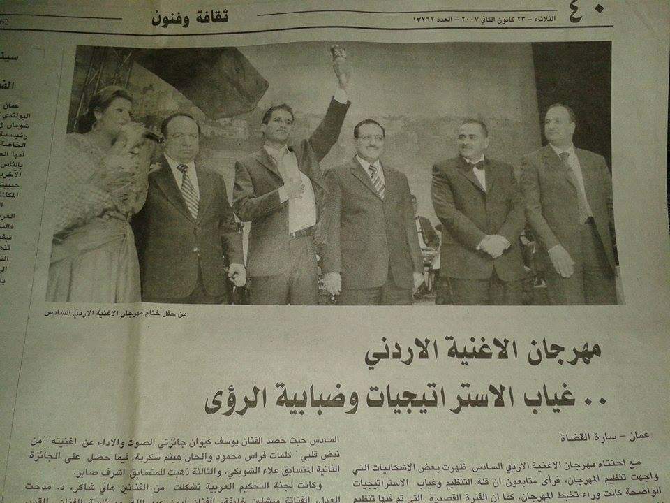 سرايا - ايمن العمري - منذ أكثر من 14 عاماً حصد الفنان الاردني يوسف كيوان جائزة الملك عبدالله الثاني للتميز والابداع، وذلك بعد مشاركته في مهرجان الاغنية الاردنية السادس الذي انطلق عام 2000 الذي حصد به جوائز عديدة كجائزة الميكروفون الذهبي و جائزة أفضل صوت للعام 2006 وجائزة افضل آداء في الأغنية الخاصة للعام 2006، إلا انه ولليوم جائزته لم ترى النور بعدها، ولم يتسلمها منذ ذلك الوقت لأسباب يجهلها إلى الآن.