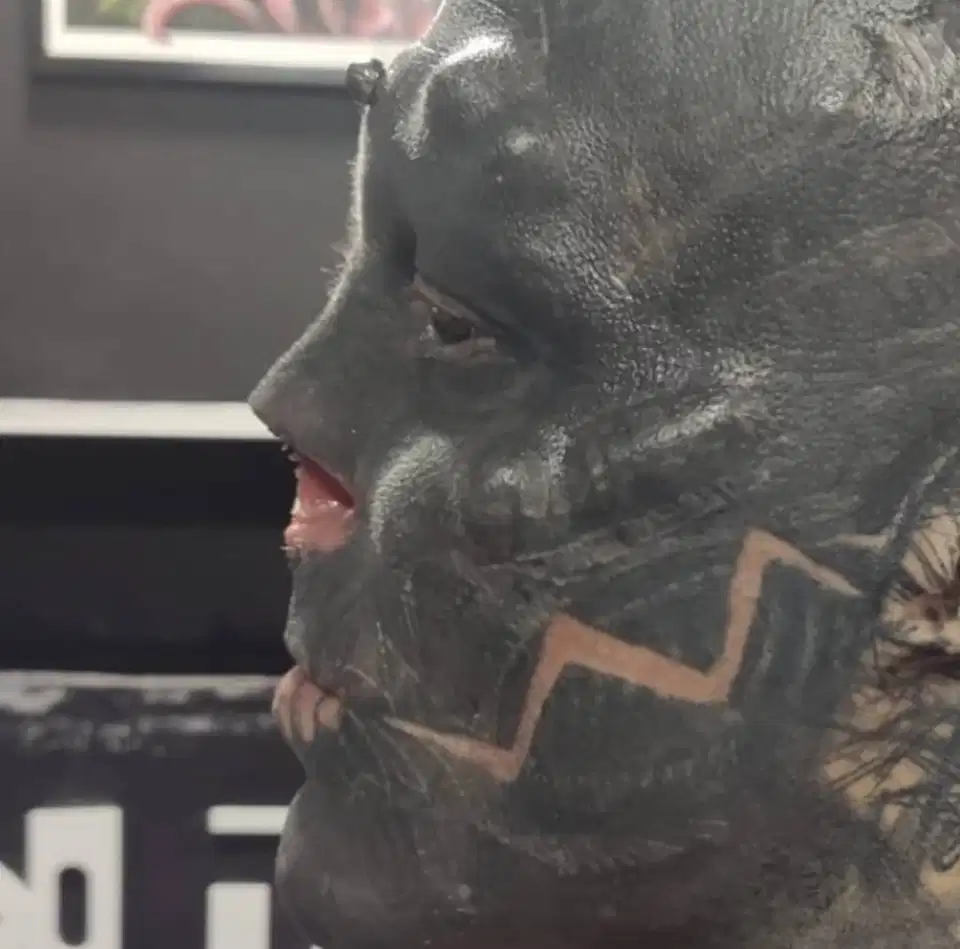 فقد قام بإزالة كلتا أذنيه جراحيا ليبدو غريبا، وليس بشريا، كما خاطر بشق لسانه، والذي ينطوي على قطع العضو العضلي إلى قسمين بمشرط.